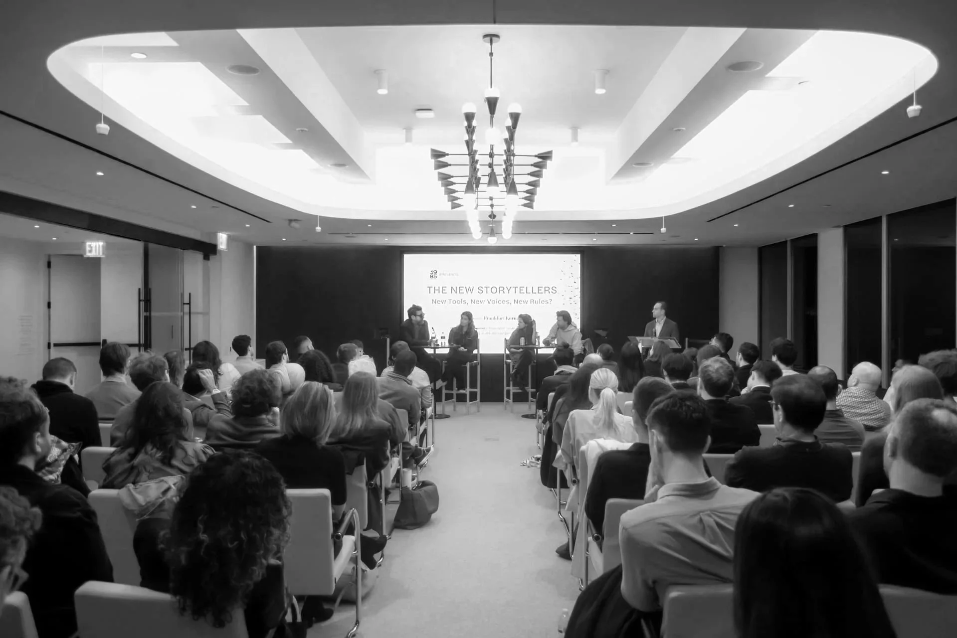 Intimate gathering with speakers and select guests.
